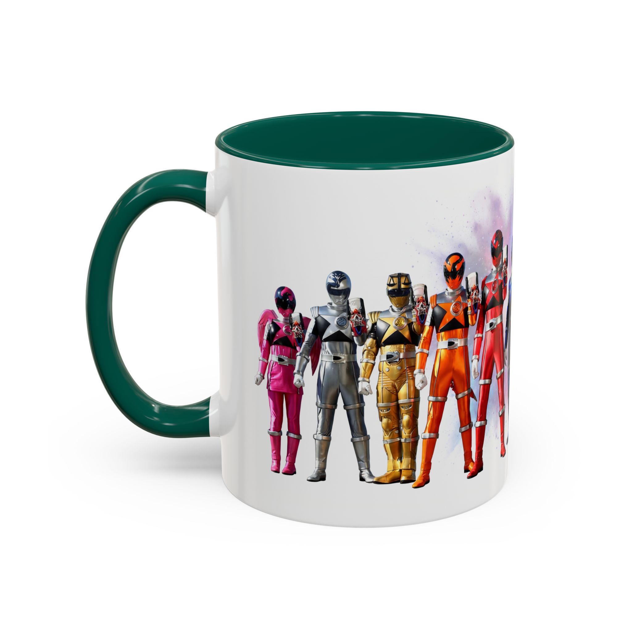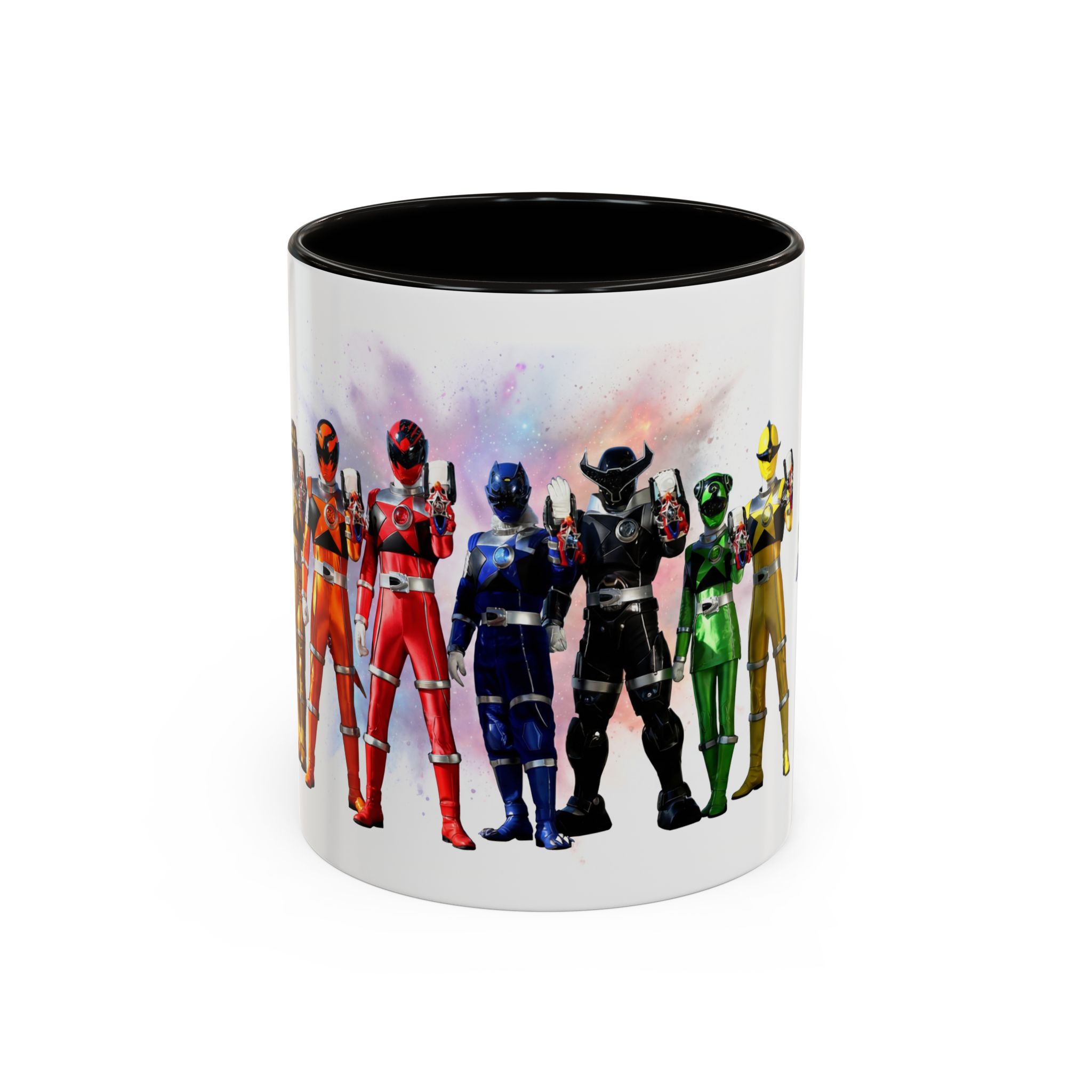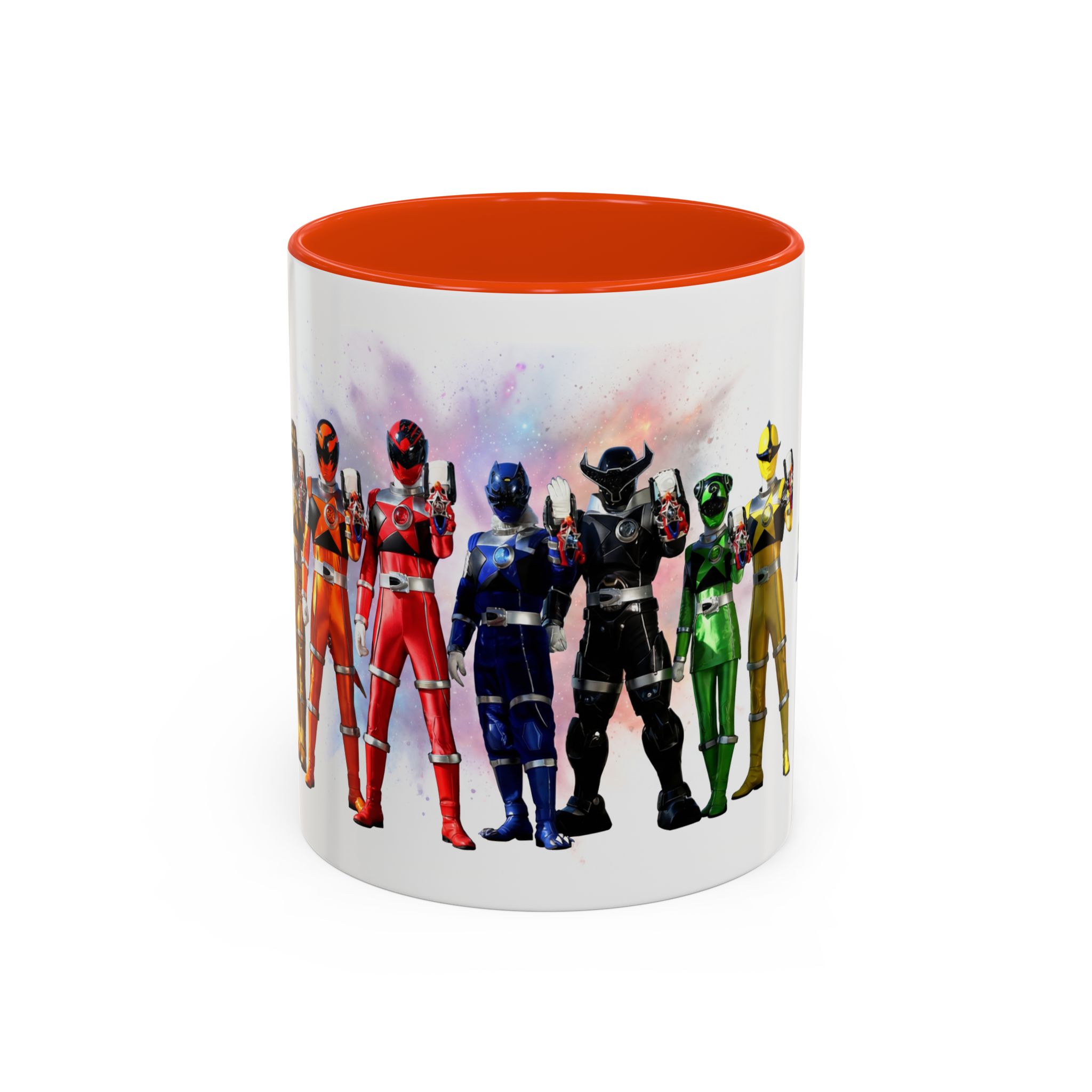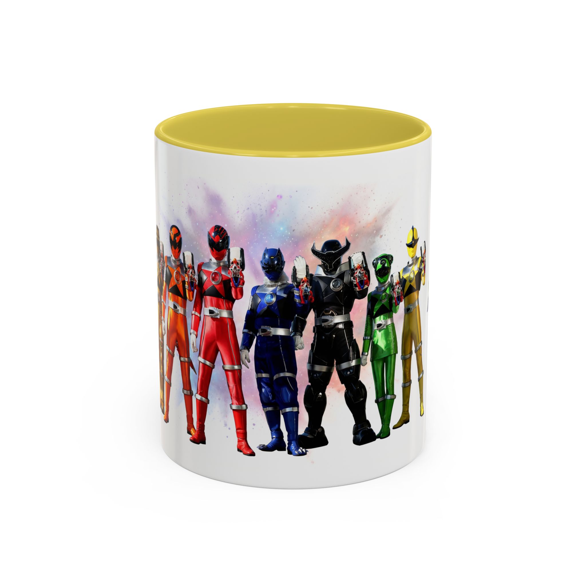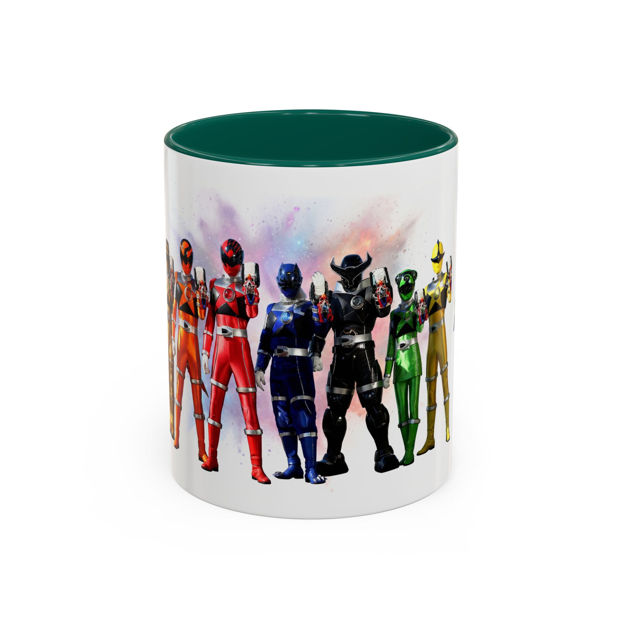 Bright, nostalgic, and ready to fuel your day — this ceramic mug brings the team together in full color. The artwork wraps around the cup, turning a morning coffee or late-night tea into a small, heroic moment. Smooth glossy finish and vivid printing make each ranger’s color pop, while the colored interior and handle add a playful, personalized touch. It sits comfortably in hand thanks to the C-shaped grip and holds enough warmth for a long conversation or a quick caffeine reset. Keep it on your desk, shelf, or kitchen lineup to spark smiles and start stories.