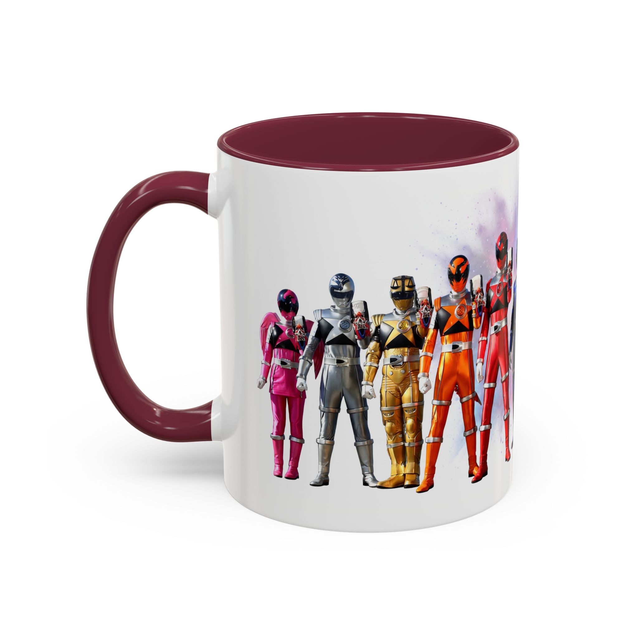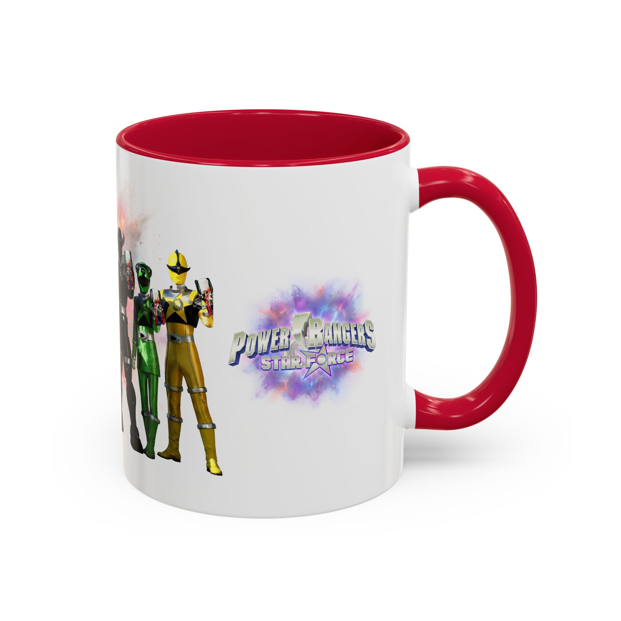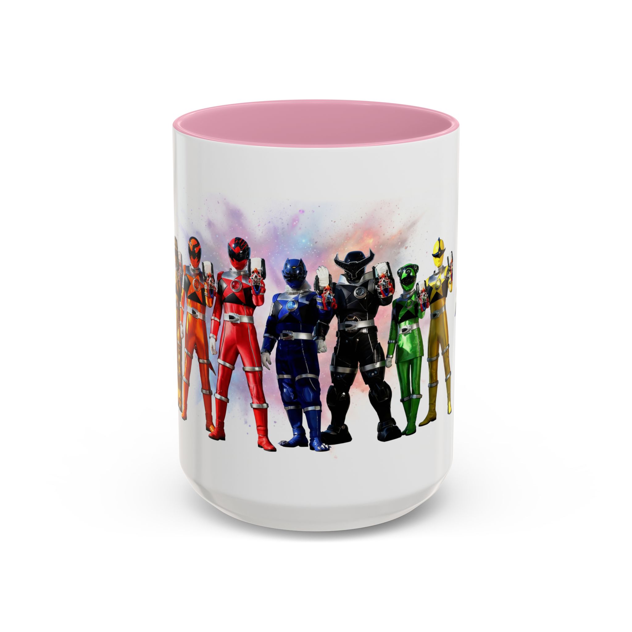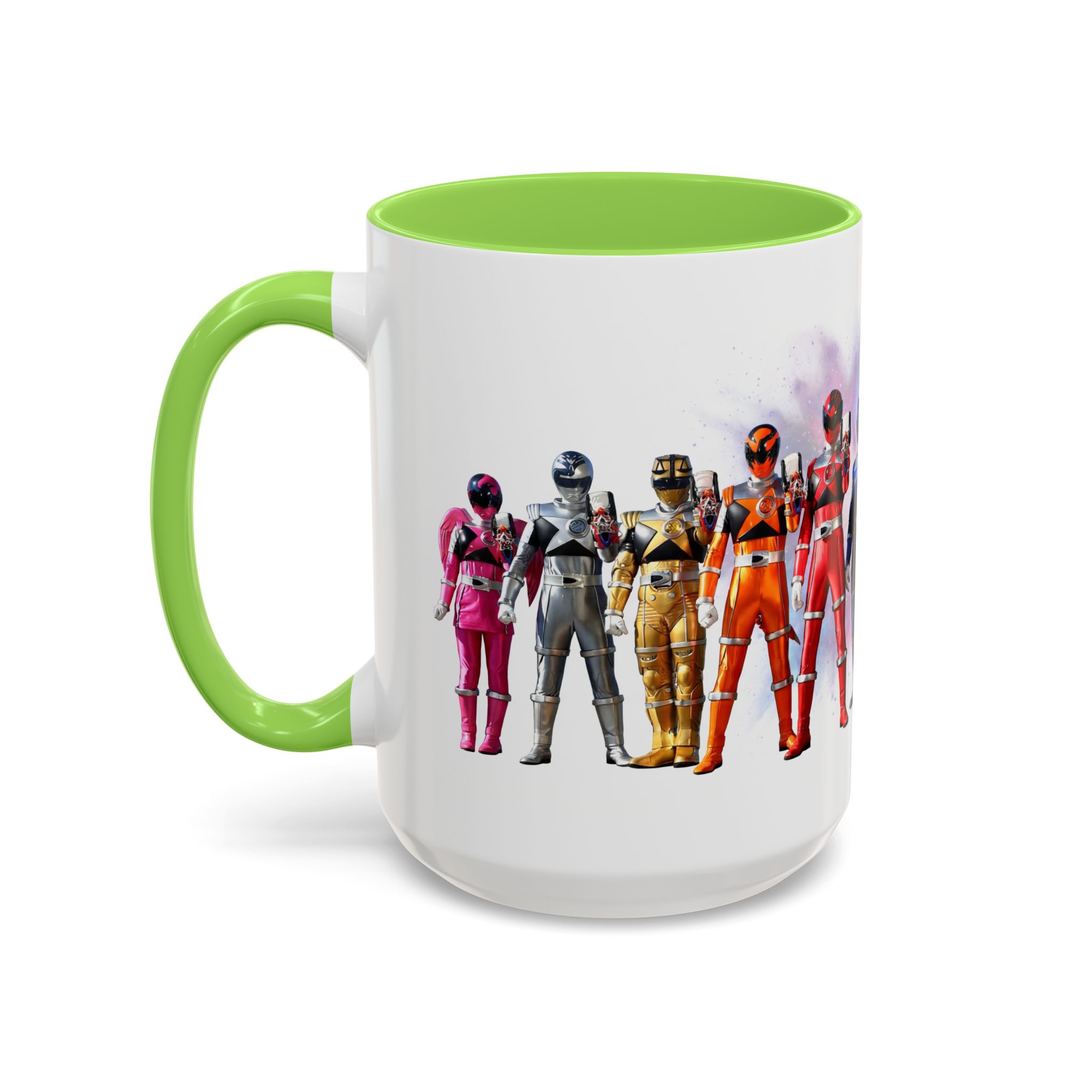 Bright, nostalgic, and ready to fuel your day — this ceramic mug brings the team together in full color. The artwork wraps around the cup, turning a morning coffee or late-night tea into a small, heroic moment. Smooth glossy finish and vivid printing make each ranger’s color pop, while the colored interior and handle add a playful, personalized touch. It sits comfortably in hand thanks to the C-shaped grip and holds enough warmth for a long conversation or a quick caffeine reset. Keep it on your desk, shelf, or kitchen lineup to spark smiles and start stories.