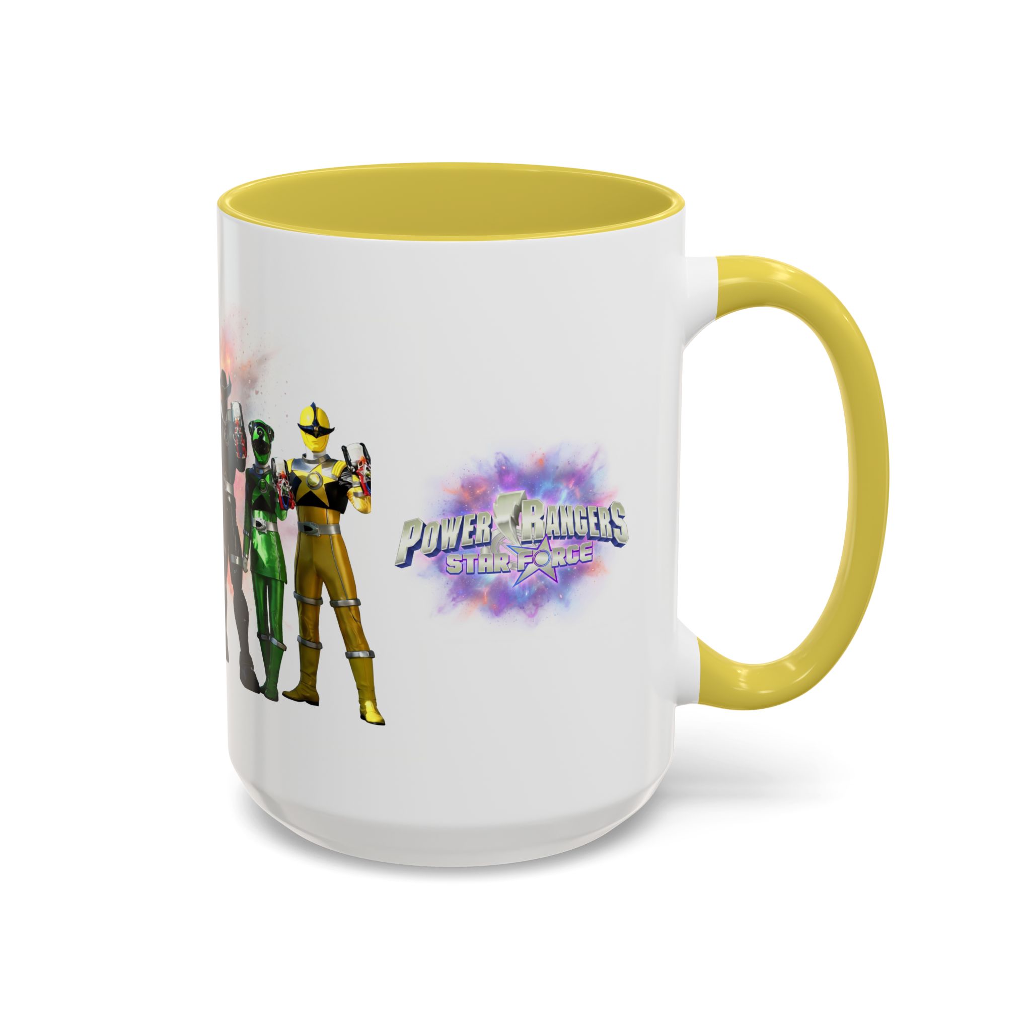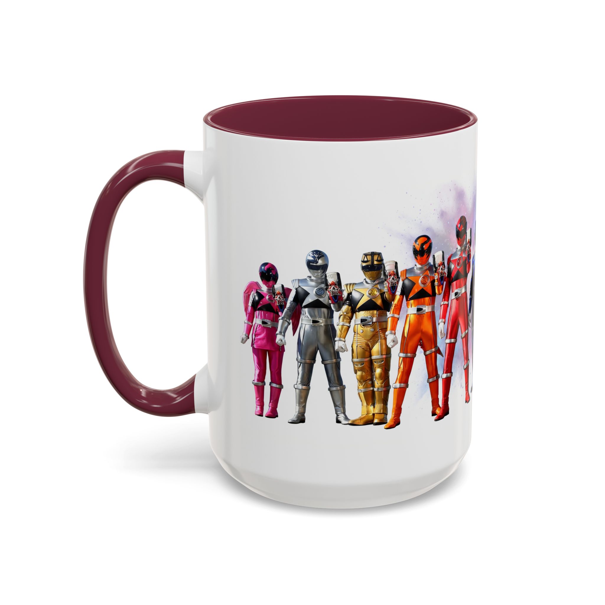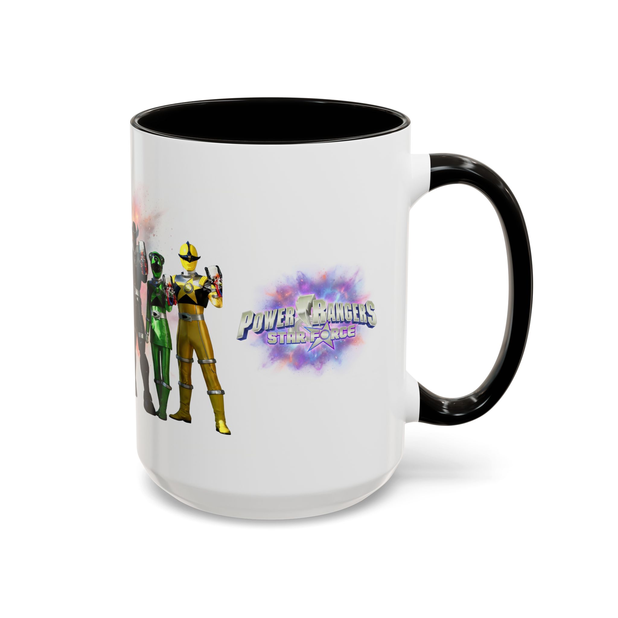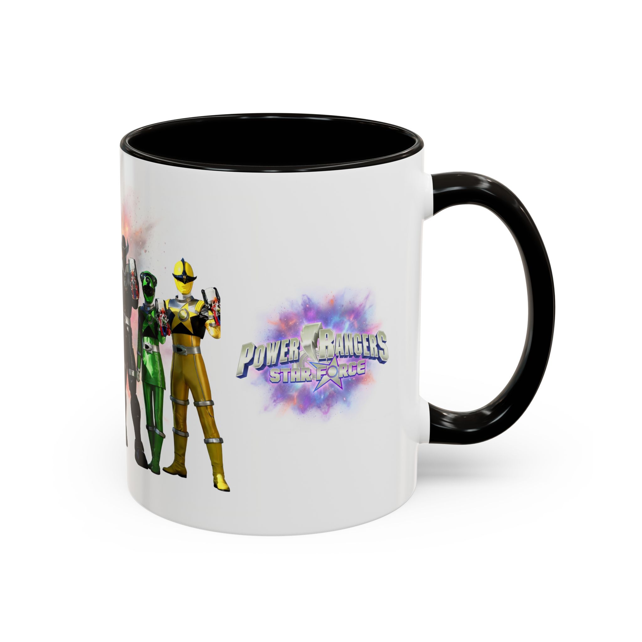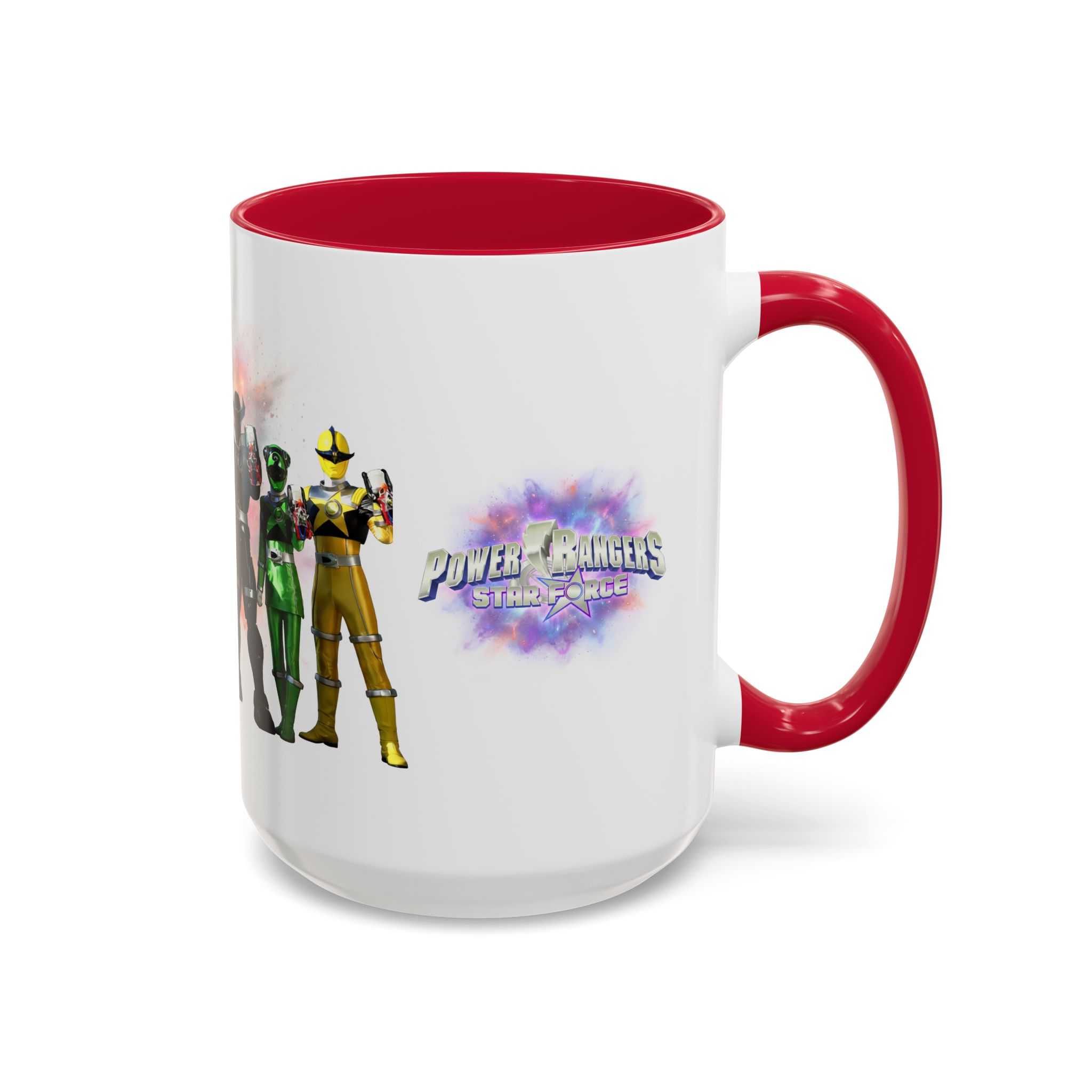 Bright, nostalgic, and ready to fuel your day — this ceramic mug brings the team together in full color. The artwork wraps around the cup, turning a morning coffee or late-night tea into a small, heroic moment. Smooth glossy finish and vivid printing make each ranger’s color pop, while the colored interior and handle add a playful, personalized touch. It sits comfortably in hand thanks to the C-shaped grip and holds enough warmth for a long conversation or a quick caffeine reset. Keep it on your desk, shelf, or kitchen lineup to spark smiles and start stories.